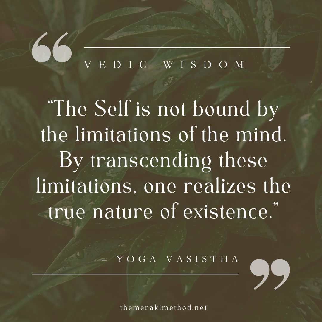 By transcending mental limitations, as the Yoga Vasistha suggests, one begins to uncover one’s authentic Self. This process allows one to see beyond the illusions created by the mind, leading one to a deeper understanding of one’s true nature and the boundless potential within. In doing so, one not only frees their Self from mental bondage but also cultivates emotional maturity, resilience, and a more expansive view of reality, ultimately living a life aligned with our highest truth and being even more capable of responding to life's challenges with greater wisdom & compassion.